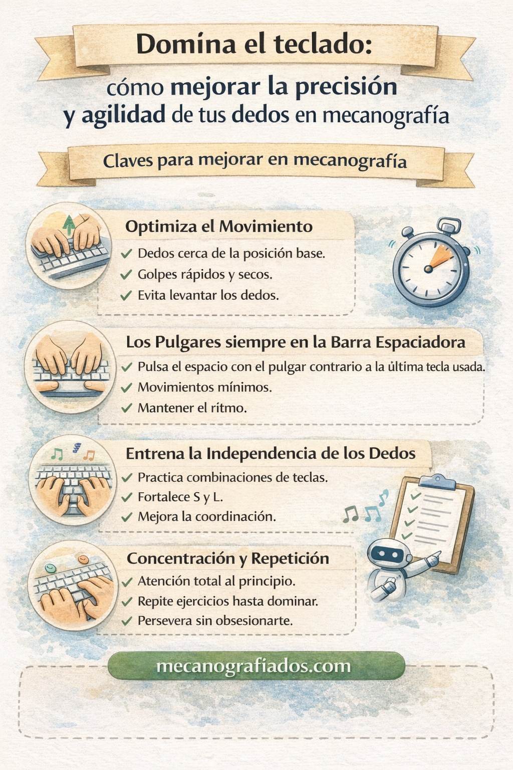 Práctica constante siguiendo la metodología recomendada para mejorar tu velocidad.